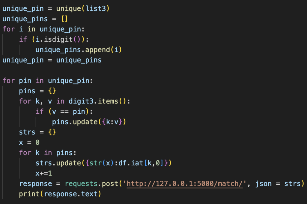 I worked on creating a database searching algorithm especially for addresses. One of the key challenges was that the addresses fed in by users were not in a standard format and there was lots of variation. Furthermore, given the number of addresses, a standard linear search was extremely inefficient. Thus, using Pandas and Numpy, I cleaned up the data to be more digestible segmenting key features like city, pin code, road name, etc. Then, the address search algorithm first filtered using these features such that the dataset to be searched was smaller.